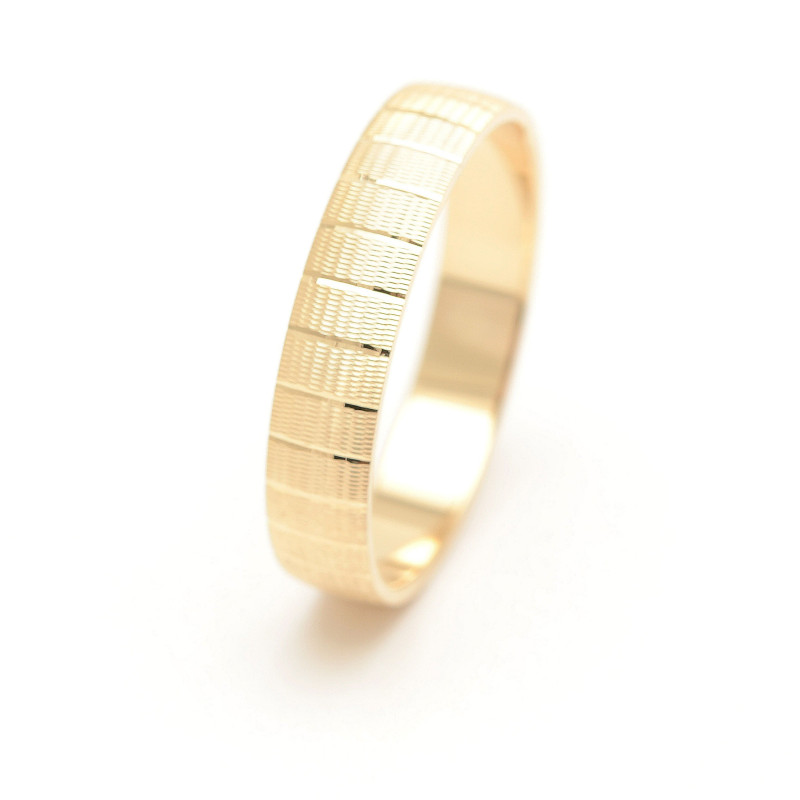 Sortija fabricada en Oro de 1ª Ley de 18K. Matizada adornada con líneas horizontales. Ancho: 4 mm.