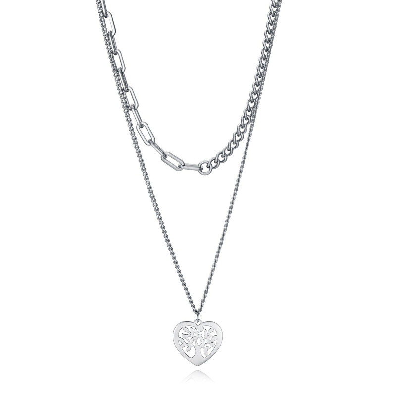 Colgante fabricado en acero. Formado por dos cadenas de distinta longitud que sujetan un colgante del Árbol de la Vida con forma de corazón. Medida ajustable entre 45 cms y 50 cms.