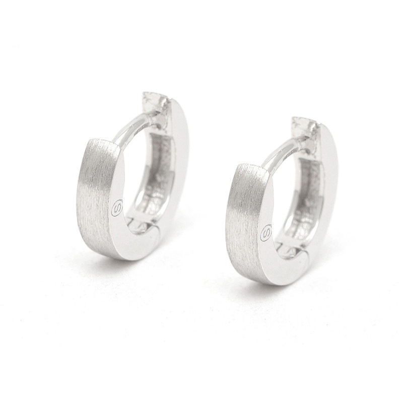 Pendientes fabricados en Plata de Ley. Con forma de aro pequeño o criolla. Cierre de bisagra. Medidas: 12 mm x 3 mm.