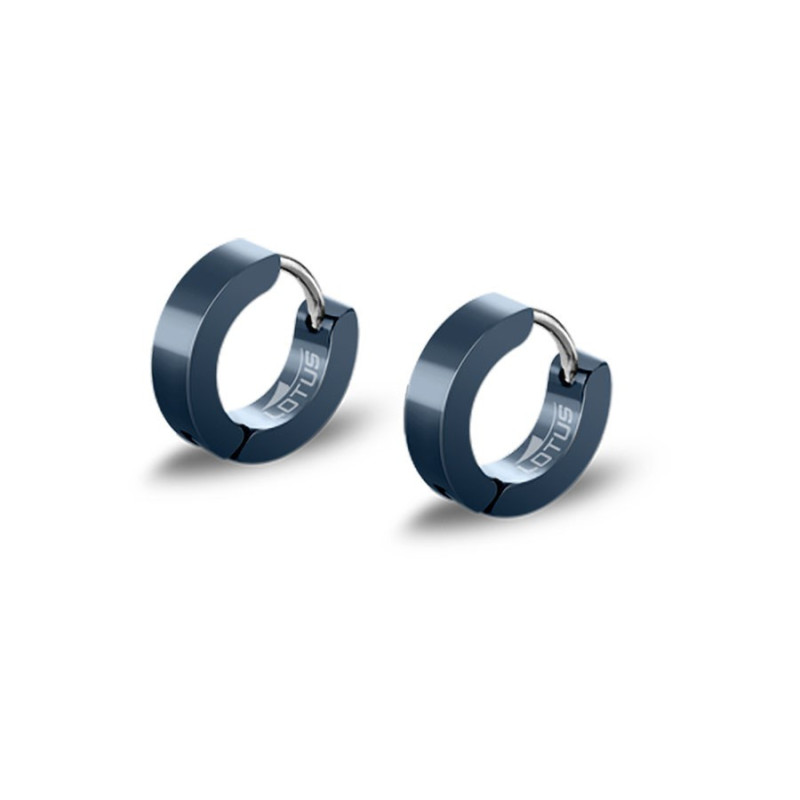 Pendientes Lotus fabricados en acero azul. Con forma de aro liso. Cierre de bisagra a presión. Diámetro: 13 mm.