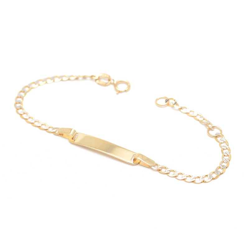 Pulsera fabricada en Oro Amarillo de Ley de 18k. Placa lisa acabada en brillo. Longitud pulsera: 14 cms ajustable con anilla a 12 cms. Peso: 1.7 gramos.