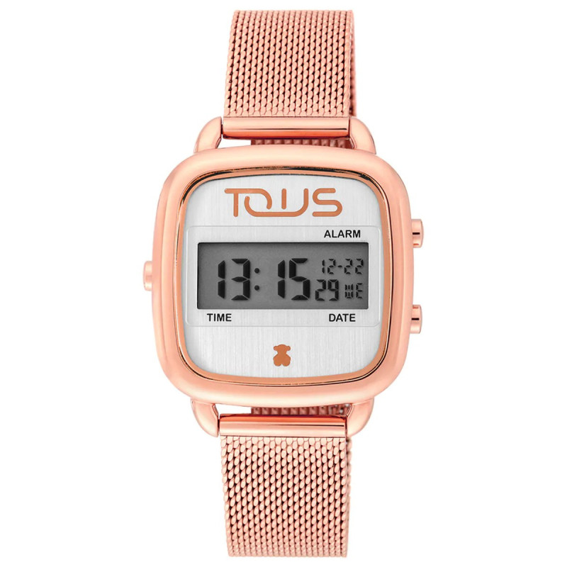 Reloj Tous con caja de acero dorado. Esfera plateada con el logo de la marca. Brazalete de malla de acero acero con cierre de pestaña. Funciones: Hora, minutos, segundos y calendario. Diámetro: 31 mm.